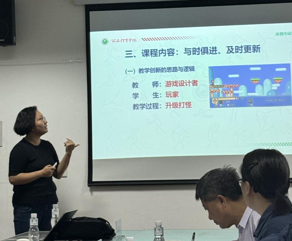 2024年6月6日下午,为激发学院教师们的教学热情,提升教学质量,推动教学改革与创新,营造良好的教学氛围,体育经济与管理学院在实验楼513会议室举办教师教学创新大赛。体育经济与管理学院院长王鹏、副院长丁建岚、张恩利及学院全体教师参与,学院副院长丁建岚主持大赛。