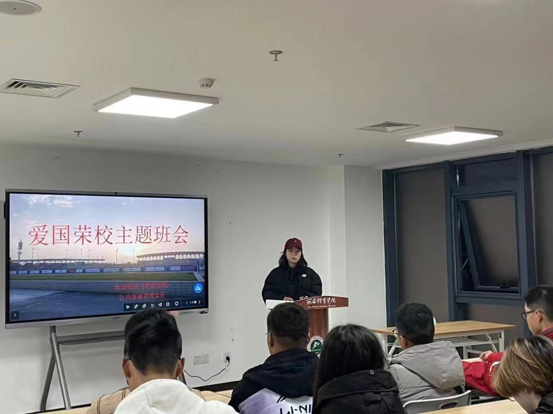 2021年11月18日晚上七点,体育经济与管理学院2021级全体学生在棒球馆103教室开展“爱国荣校”主题班会。会议由体育经济与管理学院各班班长组织召开,辅导员霍达老师、张星宇老师领导展开。