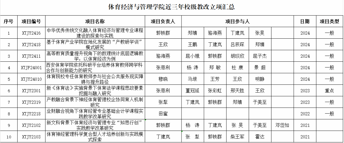 体育经济与管理学院近三年校级教改立项汇总表