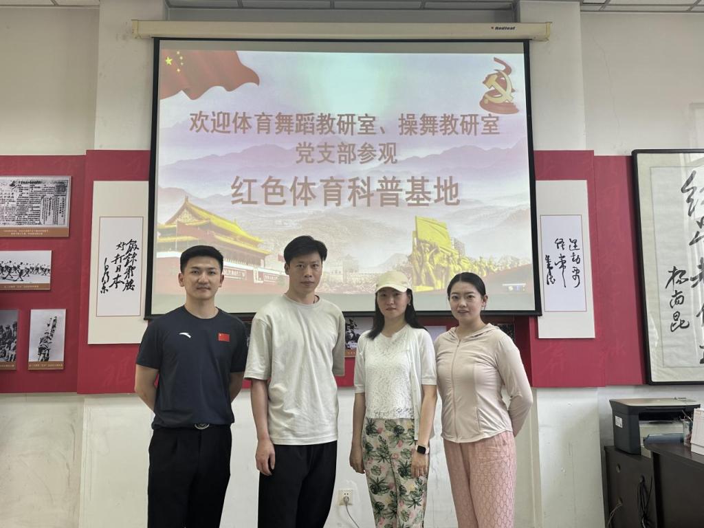 6月30日,体育舞蹈教研党支部同操舞教研室党支部的各位党员教师一同参观了英国365上市公司官网图书馆的“红色体育博物馆”。