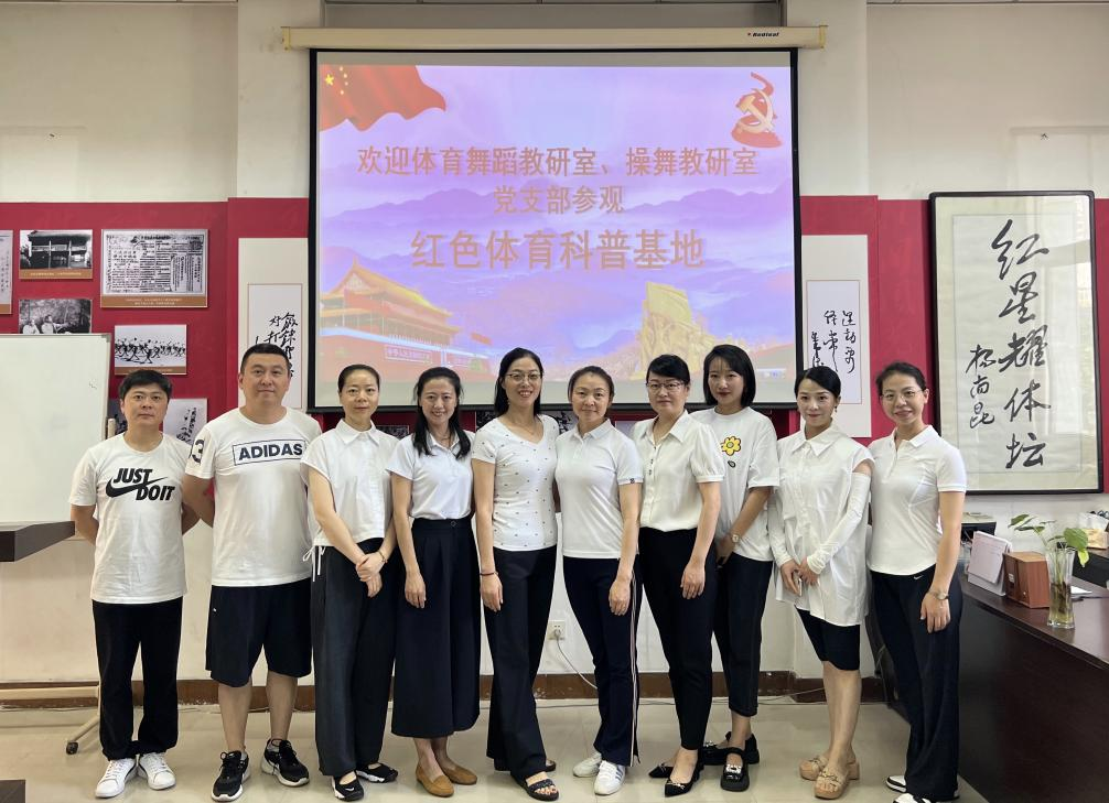 为扎实推进党员同志学习教育走实走心,加强党史教育、体育精神与实际工作的深度融合,7月1日上午,操舞教研室党支部开展“庆七一”主题党日活动。活动主要参观中国红色体育博物馆,寻访红色体育足迹,发扬红色体育精神,传承红色体育基因。