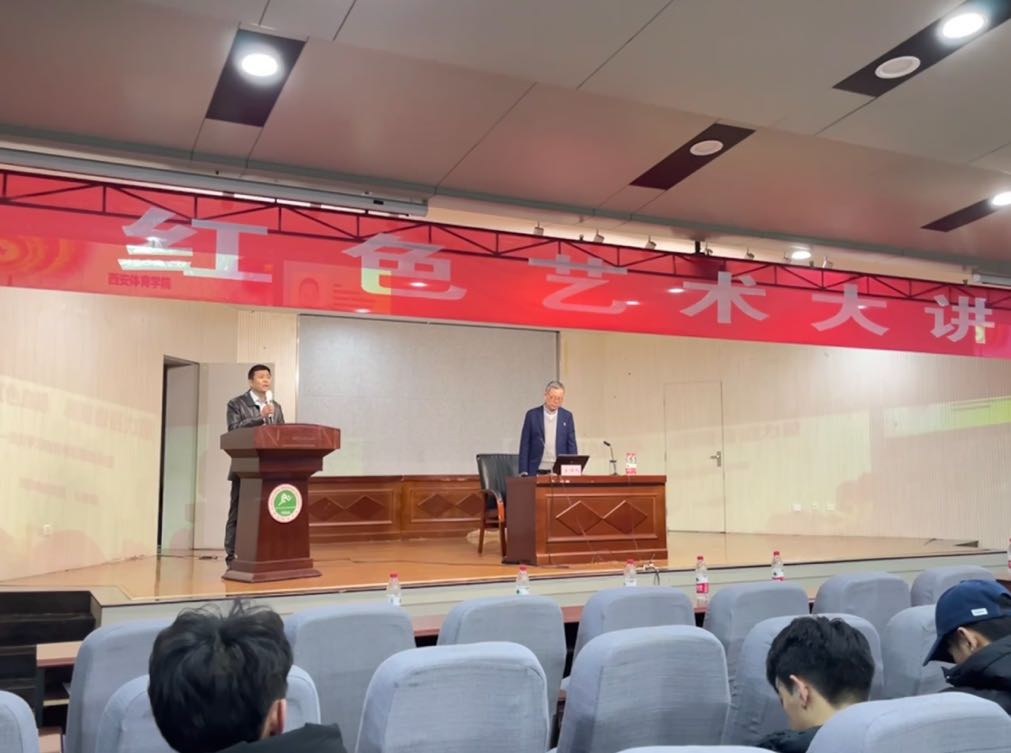 12月6日下午,艺术学院在教学楼一楼报告厅举办红色艺术大讲堂之“电影党课”主题教育活动。活动邀请西部电影集团刘秦纲老师做报告,院长杨占军主持,院党委书记丁雪艳做总结,全院师生二百多人参加。