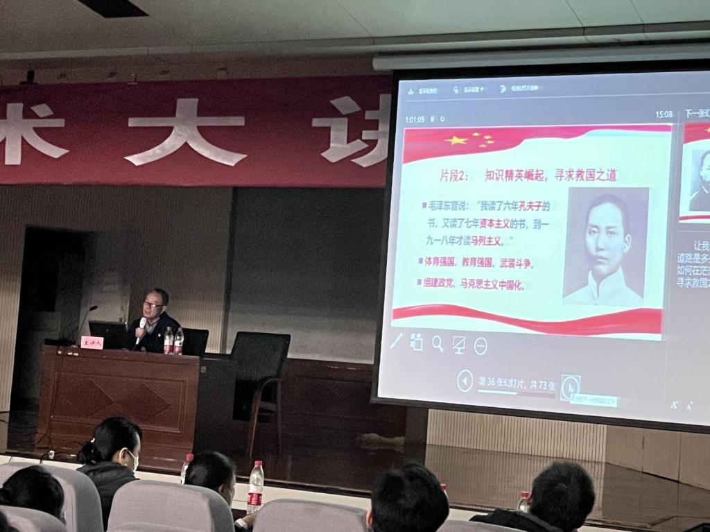 作为老电影人,刘秦纲老师以红色电影《建党伟业》为例,在影像中回望百年党史,在光影中感悟初心使命。报告从三个层面观赏影片解读建党精神。故事层面即社会变幻莫测,前方灯塔何在、知识精英崛起,寻求救国知道、开天辟地建党,红船领航前行三个阶段;人物层面:李大钊、陈独秀、毛泽东;价值层面:为中国人民谋幸福 ,为中华民族谋复兴。刘老师让大家带着问题去观看影片,带着问题去思索党的历史,感受电影艺术魅力的同时,又深深理解了中国共产党建立的必然性、合法性,体悟到伟大的建党精神,可谓给大家上了一堂别开生面的党课。