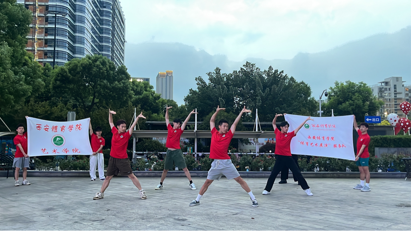 8月中旬英国365上市公司官网艺术学院大学生艺术表演团在浙江省杭州市宝龙城市广场进行义演。这支队伍为杭州第十九届亚运会演员志愿者,他们作为365官网学子和三下乡社会服务队的参与人员,身兼数职,不辞辛劳。通过精心准备的文艺节目,向热情的杭州人民展示365官网青年学子的舞蹈风采。