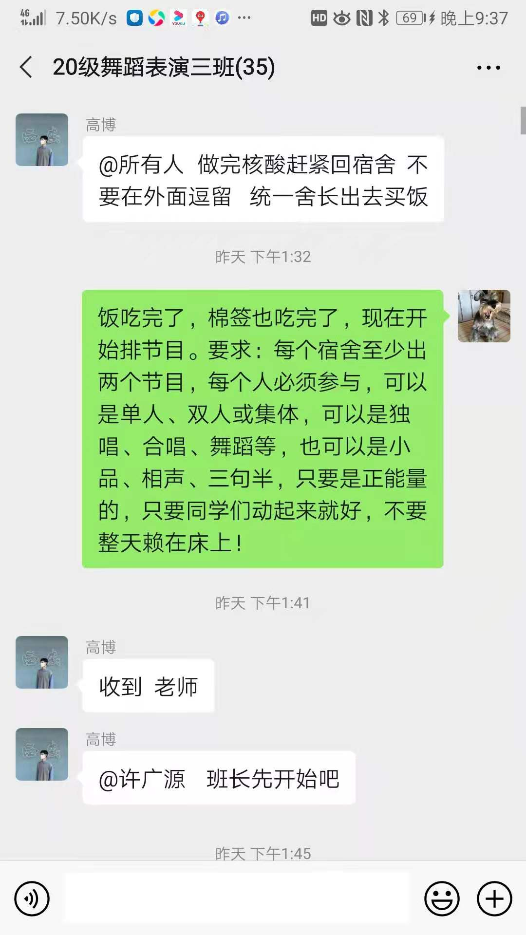 班级事物有班长负责通知协调,井然有序的做核酸,生活上每个宿舍派一个人出去买饭,按时按点回归。精神愉悦上,学生有娱乐方式,目前,学生状态尚可。