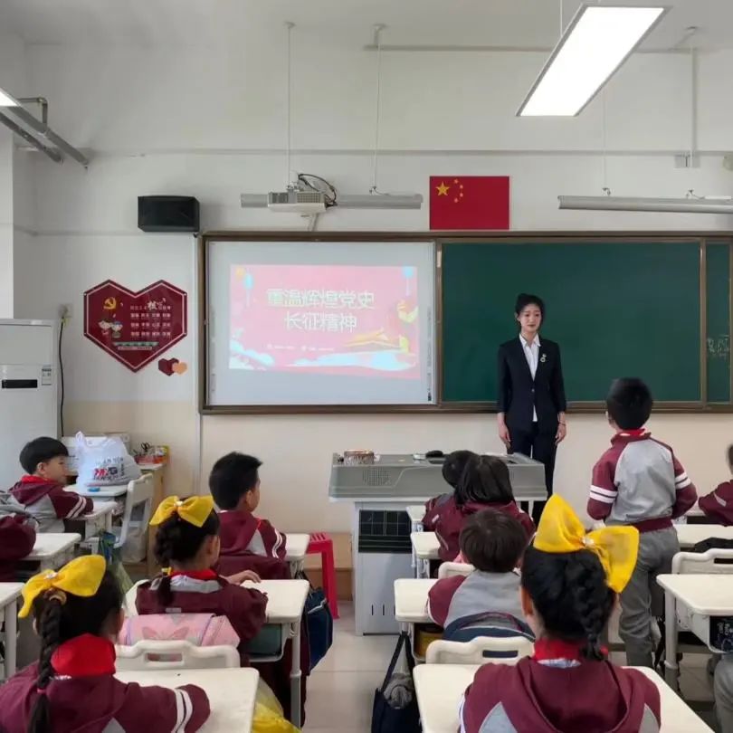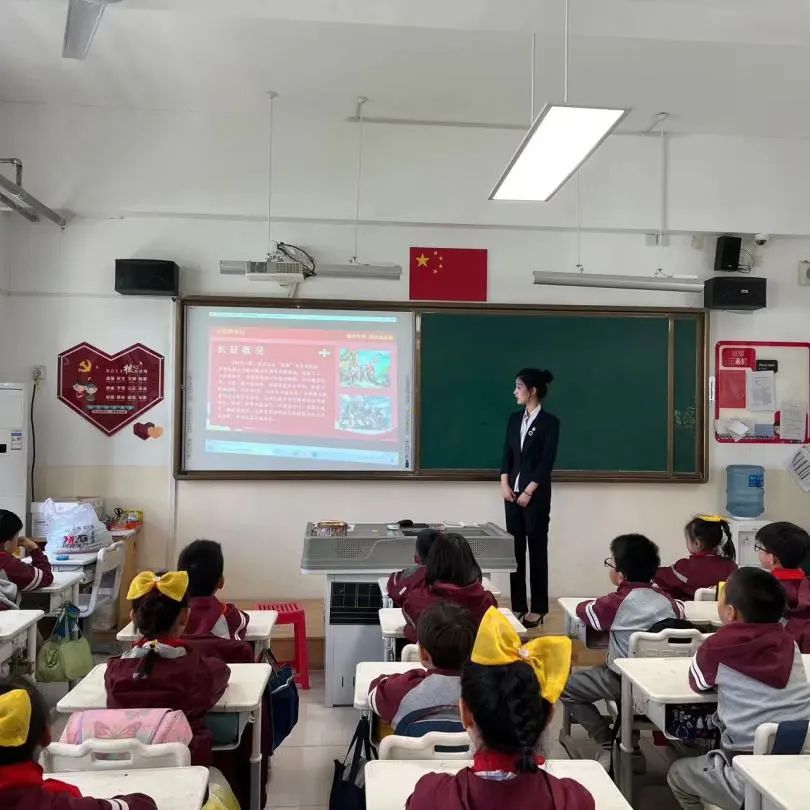宣讲员们走进课堂,为同学们讲述红色历史故事,通过带领孩子们观看图片和视频等方式,让他们再一次领会到了共产党人勇于担当、甘于奉献的精神。