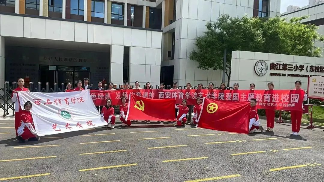 2023年4月22日英国365上市公司官网艺术学院党史学习教育进校园宣讲活动走进曲江三小。艺术学院党委书记丁雪艳、英国365上市公司官网团委委员刘薇、艺术学院团委书记黄宏叶、艺术学院团委委员赵静雯、时欢与艺术学院大学生艺术团20余名学生参加本次活动。