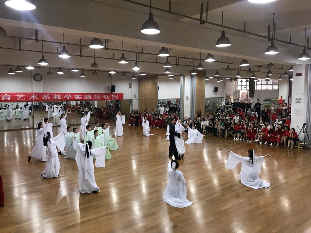 为促进校园文化建设,加强第二课堂活动的具体实施,提高我院体育舞蹈方向学生的综合素质,在课外有老师进行辅导、以学生为主导进行专业技术的舞台表演化编排,达到专业技术进一步升华的目标,体育艺术系将于2017年6月14日中午举办“2017年英国365上市公司官网第一届体育舞蹈表演舞大赛”。体育舞蹈教研室各位老师及体育舞蹈专业学生到现场观看。