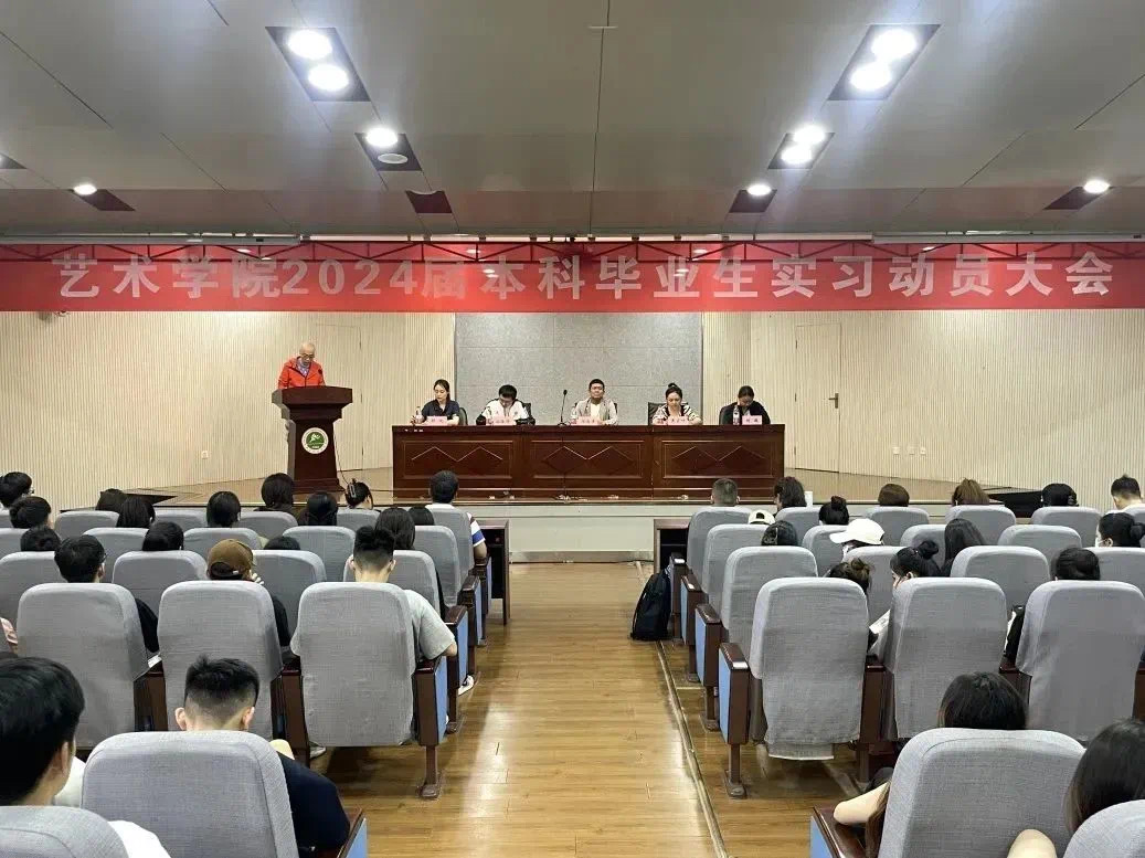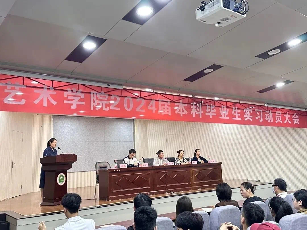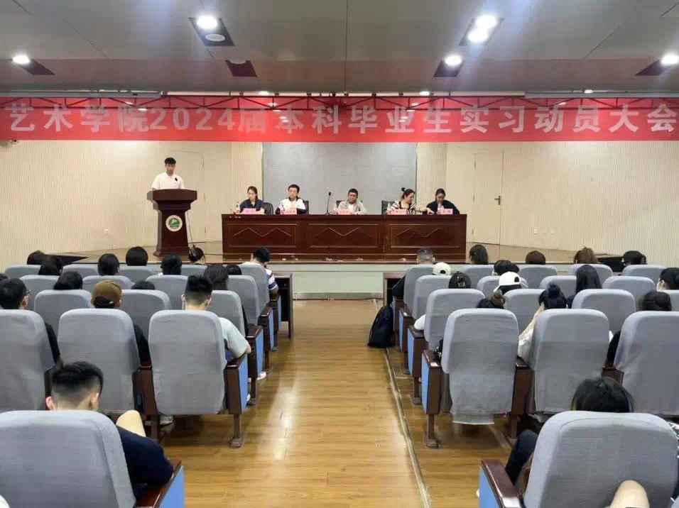 为有效引导我院学生更好的参与实习工作,快速完成角色转化。艺术学院2020级于6月7日中午在教学楼一楼报告厅召开2024届毕业生实习动员大会。