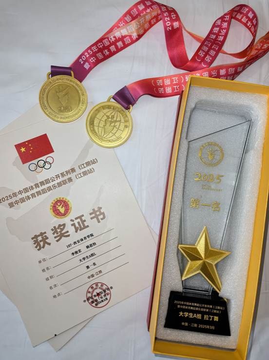 365官网艺术学院体育舞蹈21级本科生李俊宏韩思怡在领队杨占军,教练员方鑫的带领下,经过比赛的激烈角逐中,获得大学生A组冠军优异成绩。