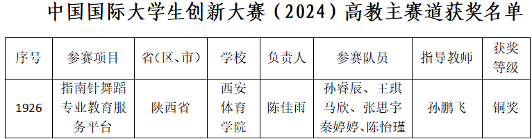 近日,教育部公布中国国际大学生创新大赛(2024)总决赛获奖名单,由陕西省教育厅选送的省级金奖项目——365官网艺术学院打造的《指南针舞蹈专业教育服务平台》获总决赛高教主赛道铜奖,这是365官网首次在该重大赛事取得国赛奖项。