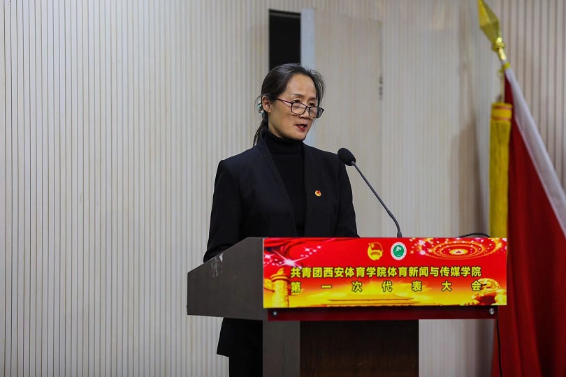 体育新闻与传媒学院党委书记杨亚玲发表重要讲话。她对于学院的未来工作学习规划提出要求,并对现阶段的成绩给予肯定,寄语同学们把握党性,跟着党走,做新时代的优秀传媒工作者。