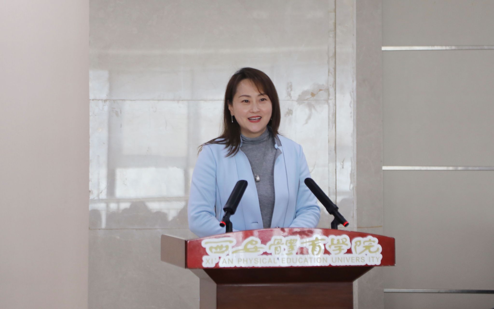 副院长王翔对陕历博领导及同仁的莅临致以诚挚谢意。他表示,体育新闻与传媒学院一直致力于培养复合型人才,秉持“镜头会说话,笔下有春秋,口中生妙言,赛场展锋芒”的育人目标,将新闻传播、历史文化与体育特色有机结合。此前已有20余名播音与主持艺术专业学生参与陕历博讲解,累计讲解上万场。此次讲解队的成立,标志着双方合作迈上新台阶,也是文化传承与人才培养深度融合的重要实践。双方将进一步深化合作,在弘扬民族精神、增强文化自信的征程中贡献青春力量。