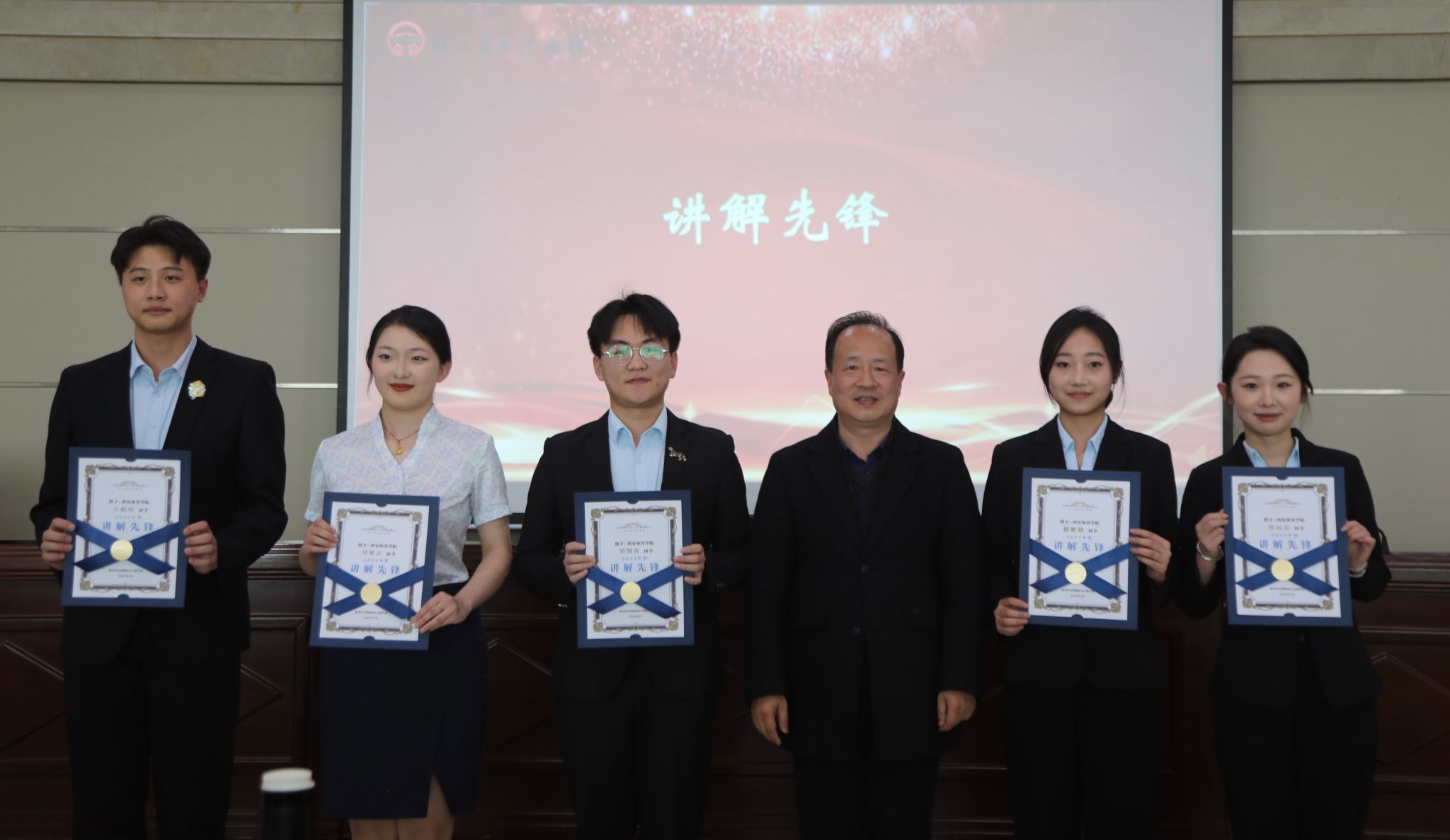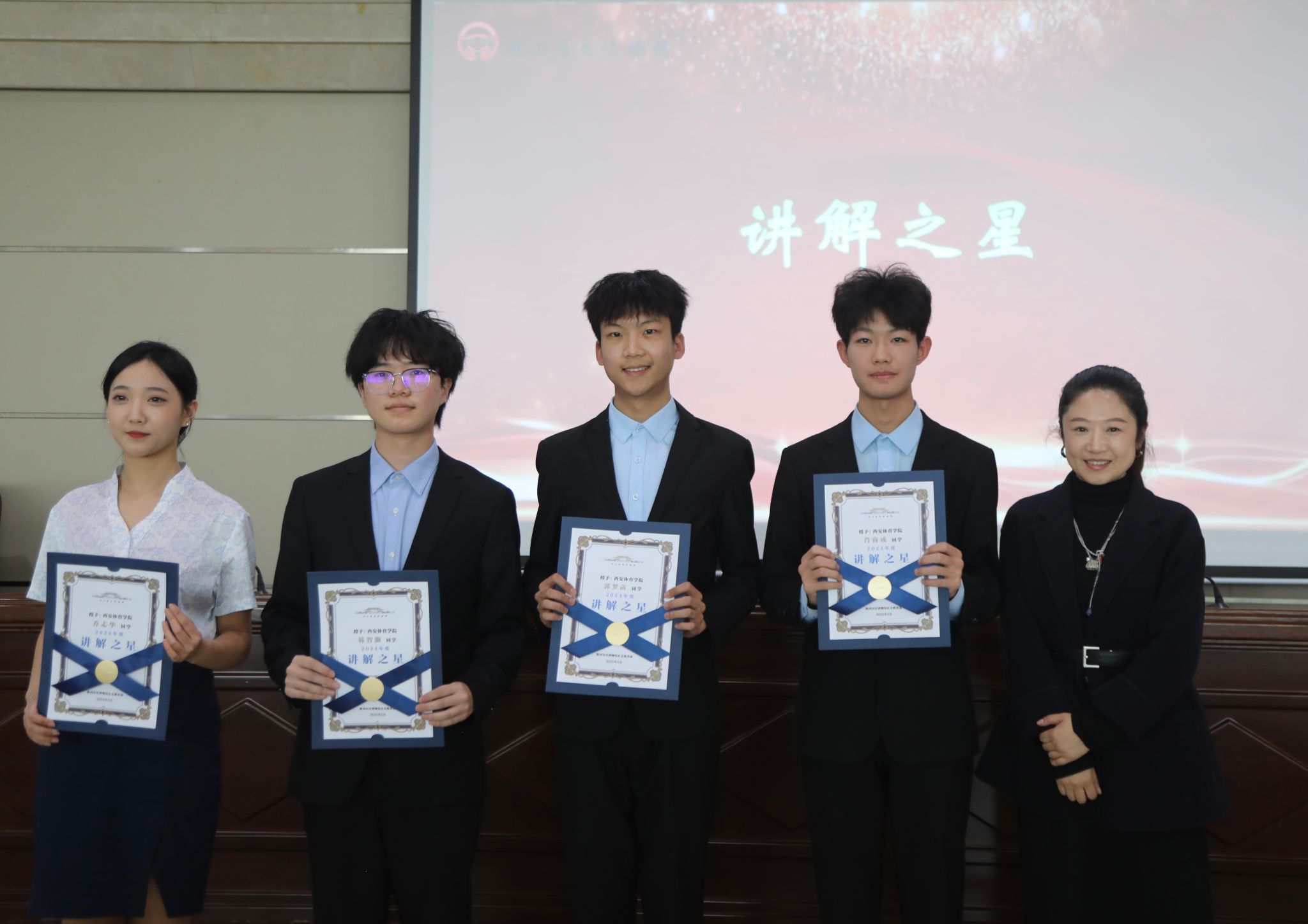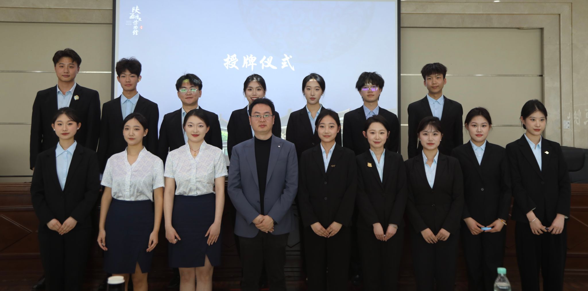 (陕西历史博物馆社会教育部主任呼啸为365官网15名大学生讲解员授予工牌)