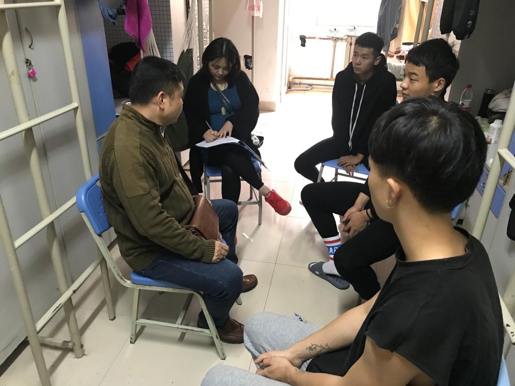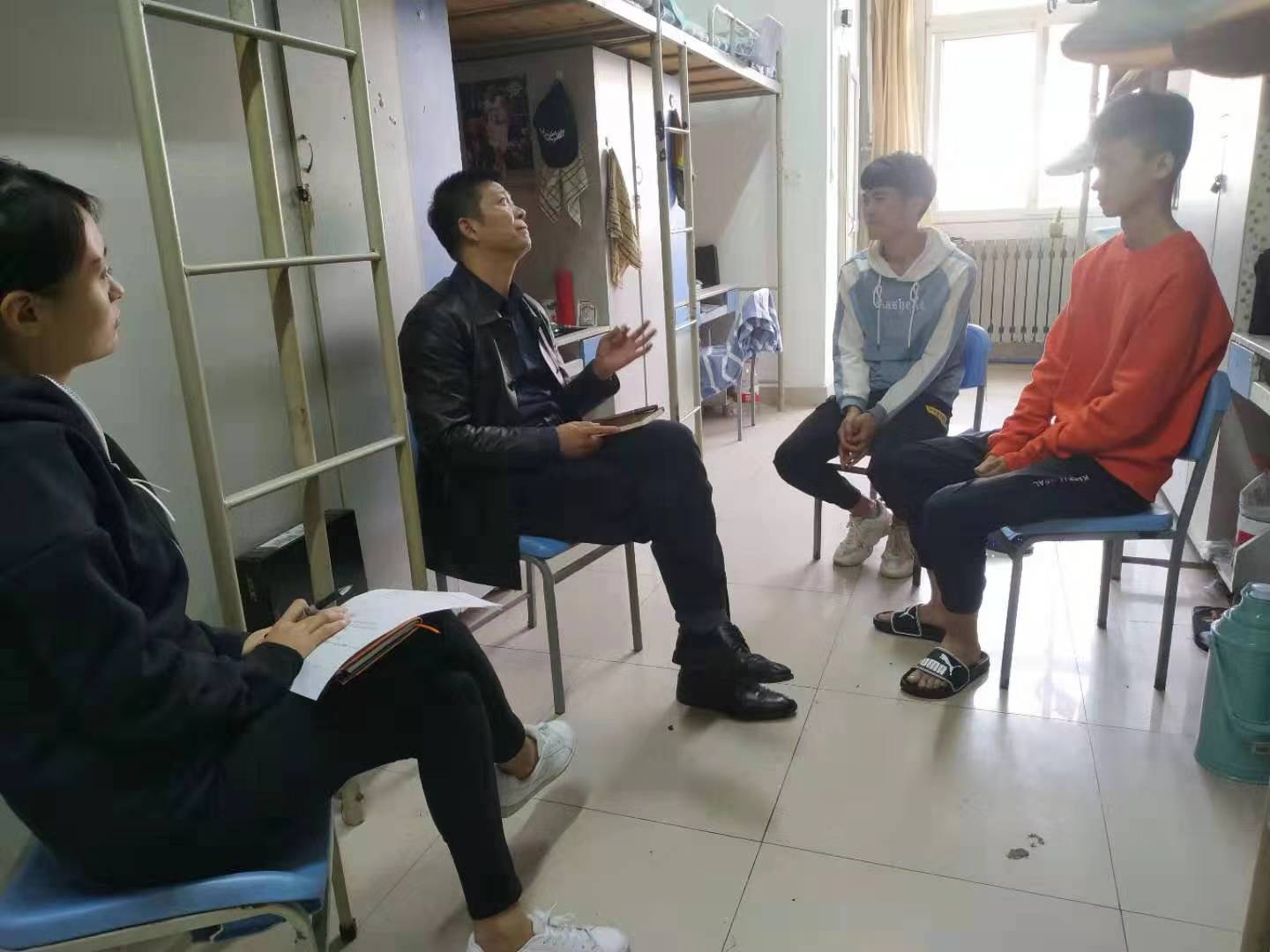 体育艺术学院杨院长、刘副院长关于“不忘初心,牢记使命”主题教育活动,根据学院要求下基层了解学生中存在的问题。10月13日,杨院长、刘副院长走访学生宿舍与学生进行交流沟通,效果显著。在学生中反映良好。