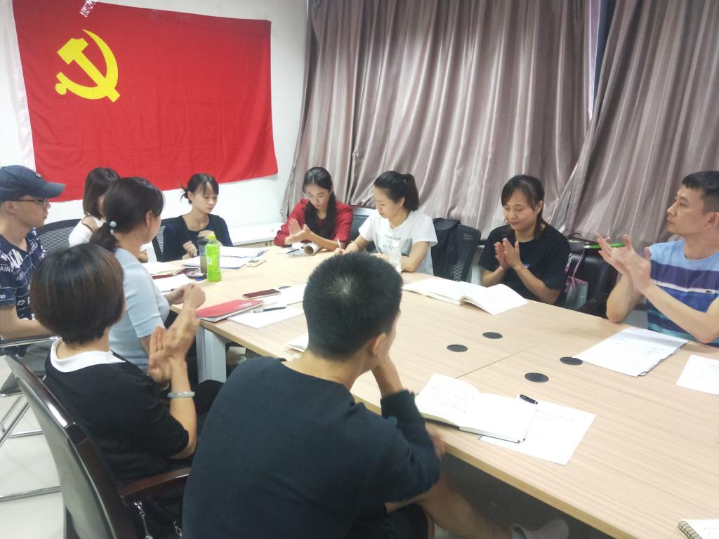 2019年9月29日下午,在支部书记娄山老师的组织下,以“立德树人”为主题开展了“不忘初心、牢记使命”主题学习交流活动。此次活动分为两个环节:一、重温入党誓词。在党员教师唐甜甜的带领下,全体党员面向党旗,共同诵读了入党誓词;二、支部所有党员进行主题讨论发言。