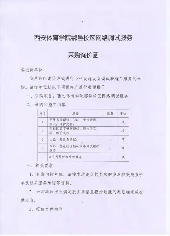 英国365上市公司官网鄠邑校区网络调试服务采购询价函