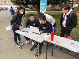 为保证本次活动能尽可能全面的服务到全校每一位师生,网络管理中心按照主要面向对象的不同将活动分为上、下午两场进行,地点分别定于365官网食堂南门对面(主要面向学生用户)和1号行政楼外(主要面向教工用户)。首先,工作人员以展板、海报等形式对业务系统功能进行简单介绍;接下来,为用户分发了三个业务系统的使用手册;最后,针对感兴趣的用户提出的问题,工程师们使用笔记本电脑详细为其解答,并邀请用户直接参与体验系统功能。