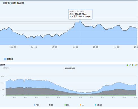 调整后,学校教育网出口临时扩容到了1G,保障教育类资源访问的同时将师生使用频度较高的应用调整到联通出口的资源池中,通过微信、电话等方式回访了解到,此前含光校区师生反映的网络卡顿、应用掉线等问题得到了有效缓解。