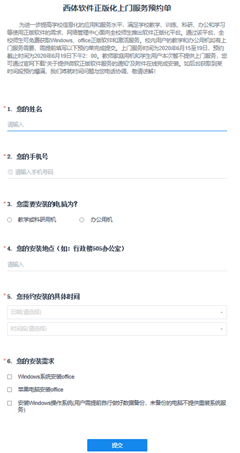 6. 网络管理中心从2020年6月15至19日为校内用户的教学和办公用机提供上门服务,如有需要,请微信搜索“英国365上市公司官网网络管理中心”公众号选择“正版预约”菜单,提前填写预约单预约。上门服务预约截止时间为2020年6月19日下午2:00。教师家庭用机和学生用户本次暂不提供上门服务,您可通过官网下载“关于提供微软正版软件服务的通知”及附件在线完成安装。如后台获取到某时间段预约爆满,我们将就时间问题与您电话协调,敬请谅解!