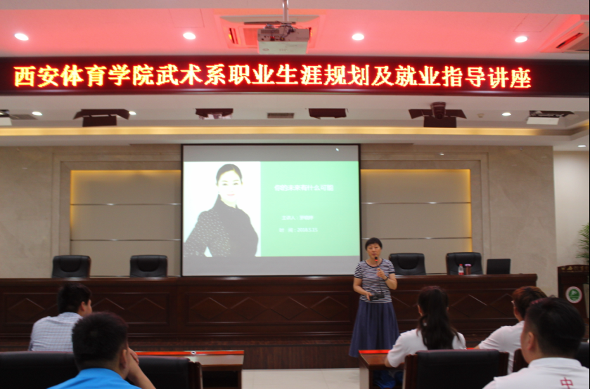 为了帮助同学们了解所学专业及其就业的前景,为同学们的职业生涯规划提供不可或缺的引导。“武术系职业生涯规划及就业指导讲座”于2018年5月16日晚七点在365官网新网球馆6楼报告厅召开。系党总支书记梁咏梅,辅导员王华及武术系2015级、2016级学生一同参加了此次讲座。并有幸请来了全球职业规划师、全球生涯教练、国际创业导师、国家高级职业指导师罗晓婷老师来为我系学生进行职业生涯规划及就业指导讲座。