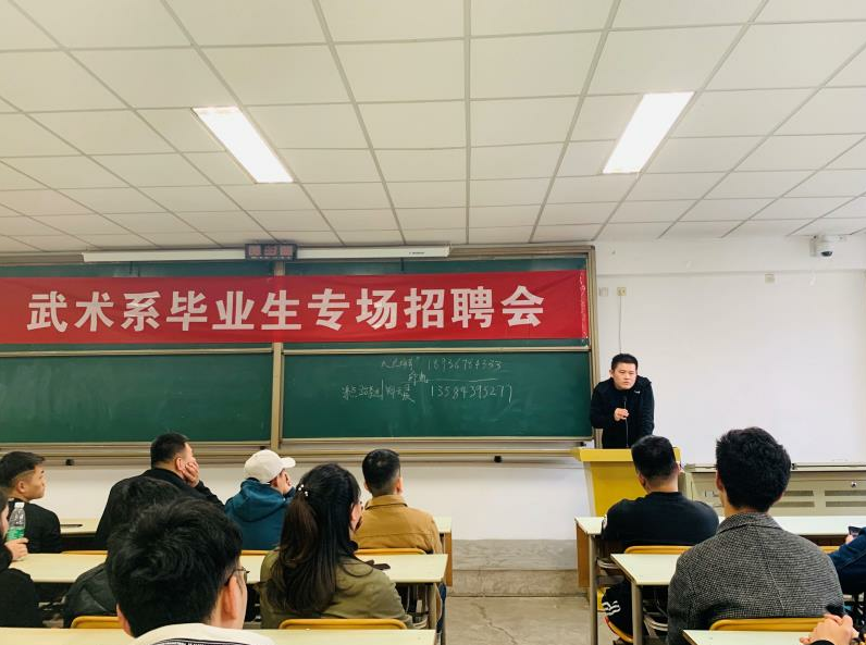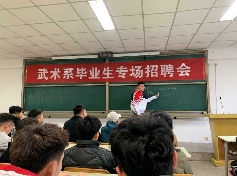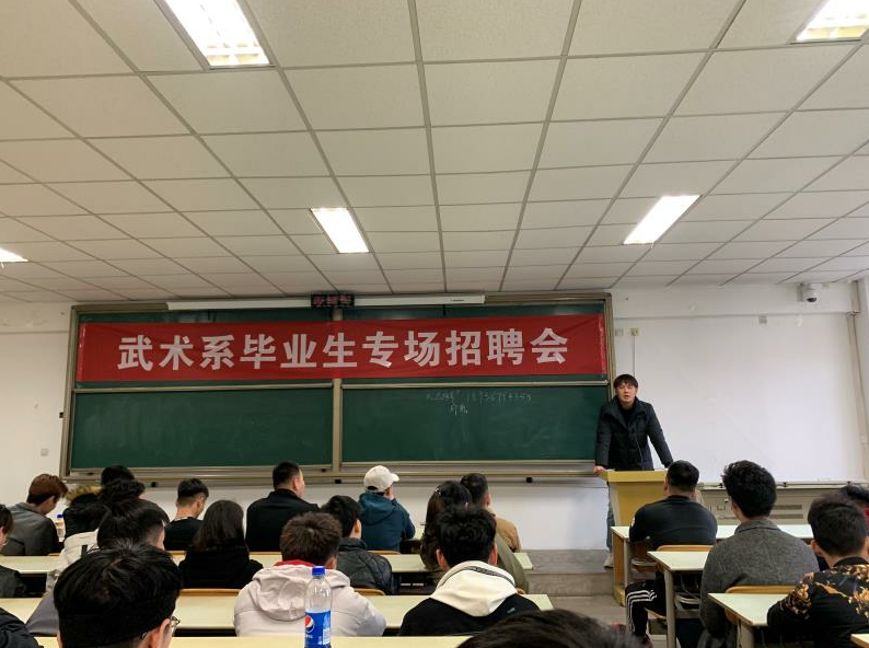 就业,这一直是一个社会热点问题,尤其大学生就业可以说是一个家庭甚至是社会中的大事,面对就业,大学生的心理是复杂多变的,首先经过四年的专业学习想要体现自身价值,但是就现在情况而言,大学生就业难也成为一大社会难题。为了更好的解决武术系学生就业难题,缓解我系学生毕业压力。3月3日下午,我系在教学楼202教室举办了“武术系2019年毕业生专场招聘会”。系领导十分重视这次招聘会,梁咏梅书记亲临会场与用人单位和毕业生交流。同时参加会议的还有年级辅导员王华、赵佳鹏。