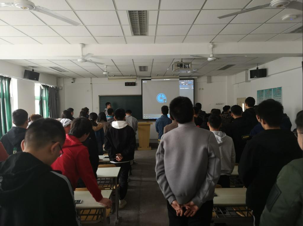团日活动上,主持人不仅介绍了植树节的由来,更是通过“塞罕坝林场建设”的视频向同学们展示了中国对植树造林的支持和其优异成果。
