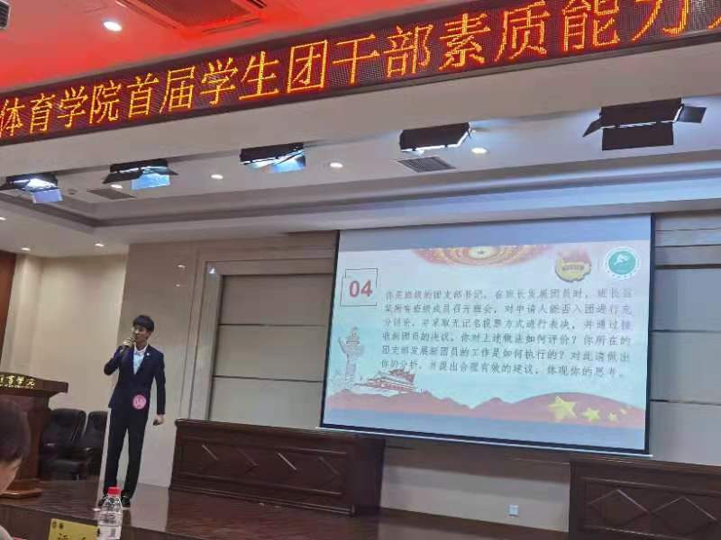 我院2018级谈鑫同学通过激烈的初赛、复赛后,在12月4日结束的英国365上市公司官网首届团学干部素质能力大赛决赛中,以《做吓不倒,压不垮的中国人》为主题的微团课讲授,成功从全校各学院推荐的10名优秀团学干部中脱颖而出,一举夺得本次大赛一等奖。向全校师生展现了武术学院团学干部的风采,彰显了武术学院284名团员的精神风貌。希望通过此次大赛激励武术学院全体团学干部奋勇前进!特向武术学院全体师生报喜!