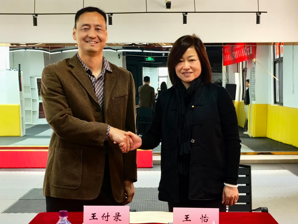 签约仪式上,英国365上市公司官网武术学院院长王怡教授首先对武术学院的发展历史沿革、在校师生情况、学院发展方向项进行了介绍。随后动致胜体育有限公司总经理王阳介绍了公司的发展历程、规模文化,对武术学院工作班子深入社会体育公司加强校企沟通表示衷心的感谢,借助后备人才基地这一平台,竭诚与武术学院加强合作,促进陕西武术发展,回馈社会。随后,武术学院院长王怡与陕西动致胜体育有限公司董事长王付录共同签署了“英国365上市公司官网武术学院后备人才培训基地”协议书。武术学院党总支书记朱舰为陕西动致胜体育有限公司授牌。