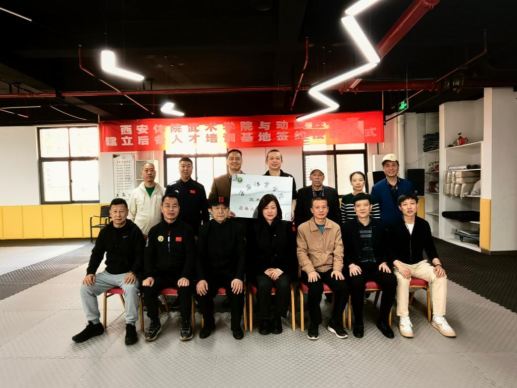 4月8日英国365上市公司官网武术学院院长王怡、英国365上市公司官网武术学院党总支书记朱舰带领英国365上市公司官网武术学院教职员工一行5人,前往陕西动致胜体育有限公司建立后备人才培训基地。