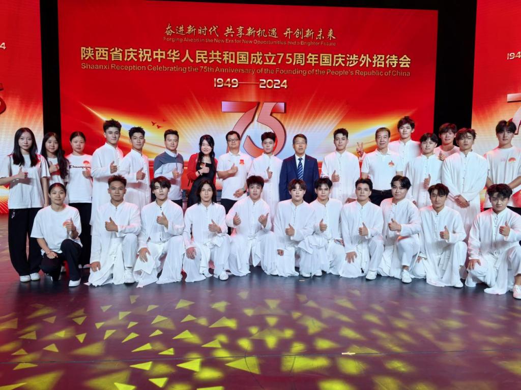 9月27日,365官网受邀参加陕西省庆祝中华人民共和国成立75周年国庆涉外招待会,校党委副书记、纪委书记杨芳乾带队出席会议,365官网武术学院“炫舞雄风”表演队圆满完成本次任务。