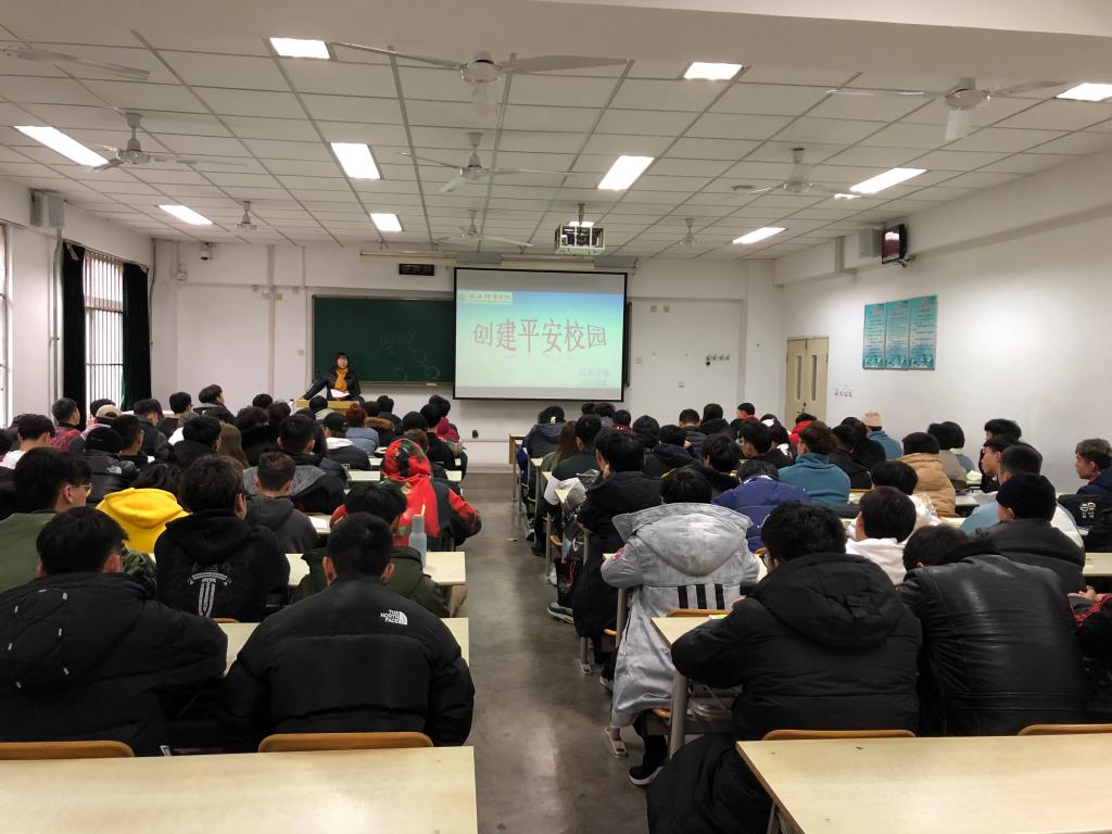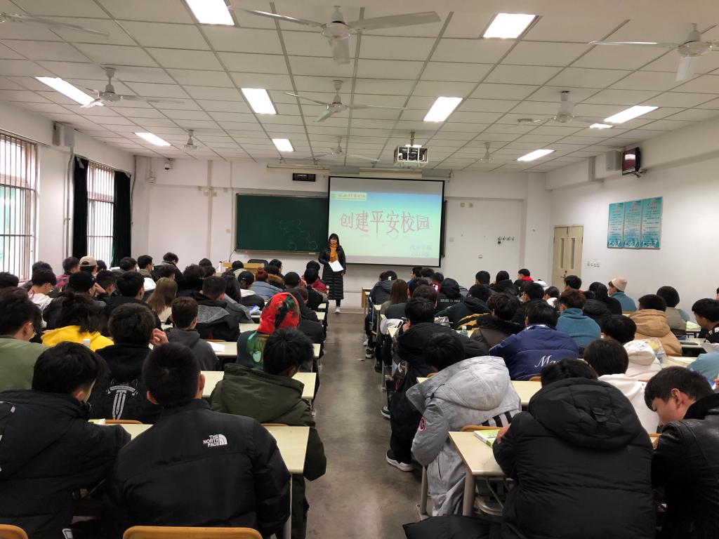 英国365上市公司官网“平安校园”检查验收动员大会于11月25日下午召开,为了落实好大会精神,顺利迎接创建检查验收,武术学院19级于2019年11月26日中午在103教室举办了“创建平安校园 你我共参与”的主题年级大会。会议由辅导员王华老师主持,辅导员赵佳鹏老师参加。