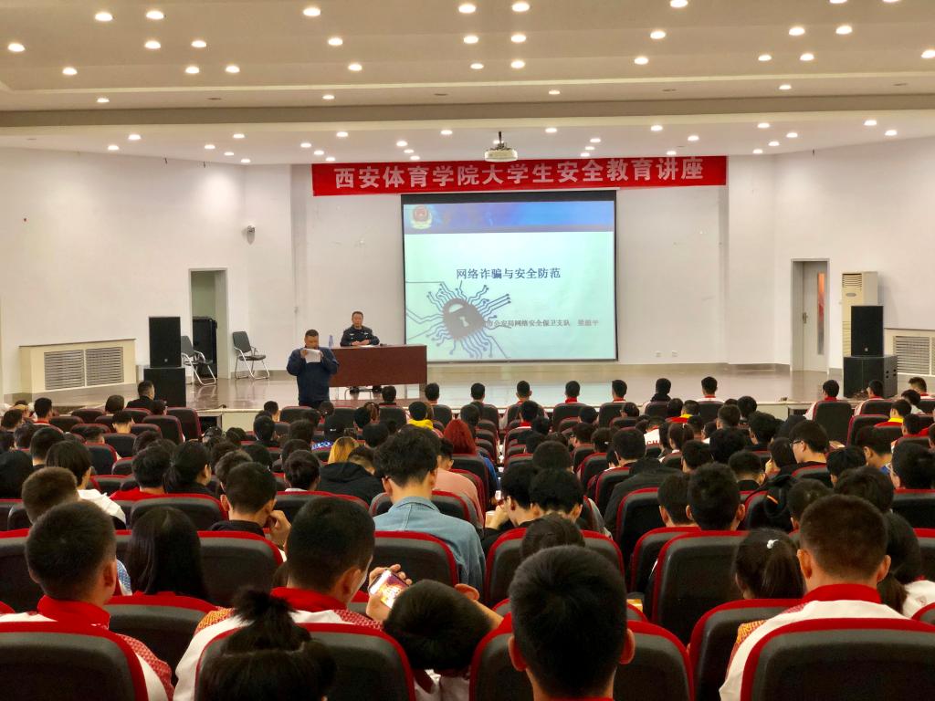 为深入推进我院“平安校园”创建工作,进一步加强学生的法制教育、增强法制观念、预防和减少学生违法犯罪,促进我院学生法制工作的科学化、制度化、规范化建设。10月16日下午,以“网络诈骗与安全防范”为主题的大学生安全教育讲座在教学楼五楼报告厅举行,讲座特邀西安市公安局网络安全保卫支队梁愿平队长担任主讲。武术学院200名学生参加了此次讲座。