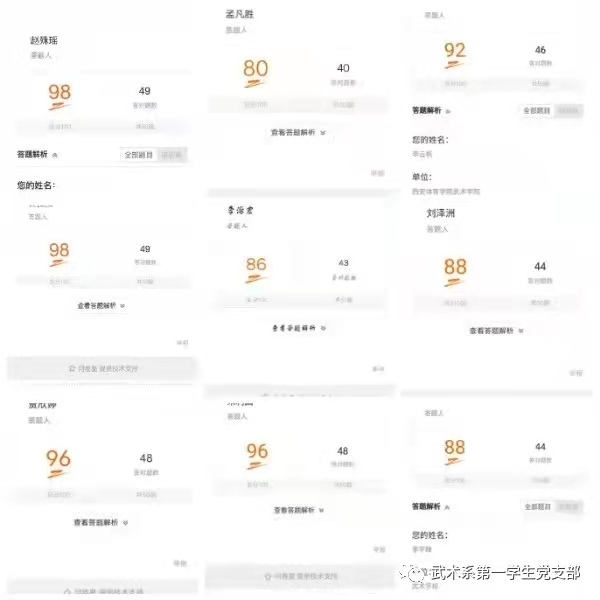 武术学院学生党支部党员参与率达到100%,通过这次党史知识答题让所有党员重温了党的历史,对党的诞生,发展历程,中国共产党初心、使命有了更深入的了解。再一次感受到中国共产党的伟大事业和坚定信念,砥砺前行,昂扬奋进新征程。