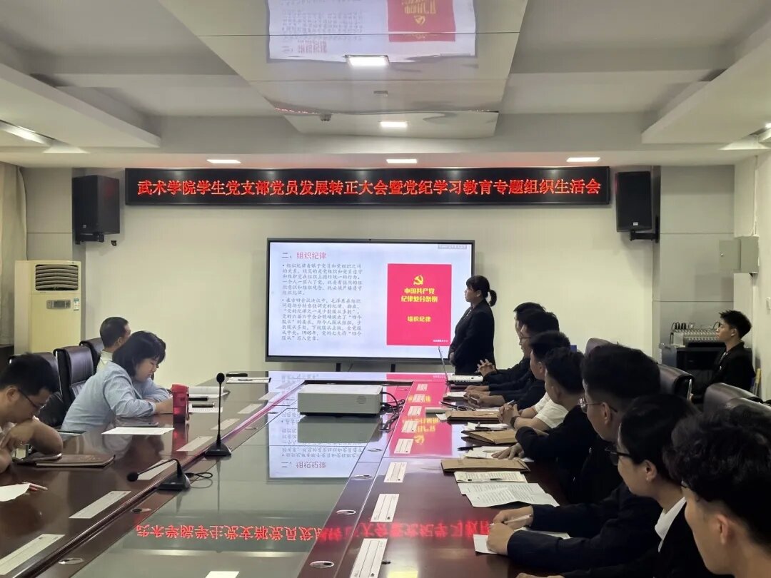 为深入贯彻落实全面从严治党要求,加强党的纪律建设,提高党员干部的纪律意识和法治观念,按照学校党委《关于在全校开展党纪学习教育的实施方案》、校纪委《关于开展“以案 促改”警示教育的通知》要求,2024年6月19日下午,武术学院学生党支部书记王华以“恪守六大纪律,筑牢思想根基”为主题讲授专题党课,武术学院党总支书记刘耀荣以及支部全体党员参加。