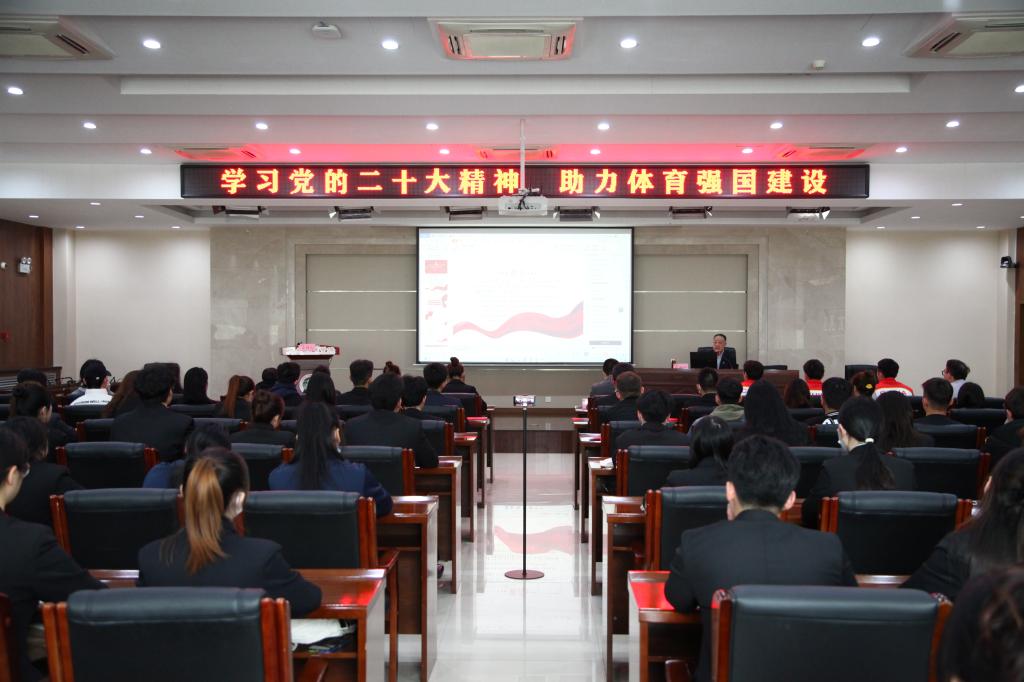 讲座内容首先围绕党的二十大报告,分别从党的二十大主题、主要成果、过去5年的工作和新时代10年的伟大变革、马克思主义中国化时代化等方面方享了学习二十大精神的感受、感悟、感想;结合实施科教兴国战略阐述体育院校如何落实助力体育强国建设;最后以著名的“奥运三问”引出回望近百年来中国体育由弱到强、由小到大的发展历程,正是伟大的党团结带领亿万人民从民族危亡到国家独立,从落后挨打到伟大复兴这一峥嵘岁月的真实写照,激励同学们一定要树立体育强则中国强,国运兴则体育兴的坚定信念,鼓励大家展望未来,在百年党史中汲取磅礴力量,不断提高自己、丰富自己,取得优异的学业成绩,才能不辜负党、国家和人民的培养。