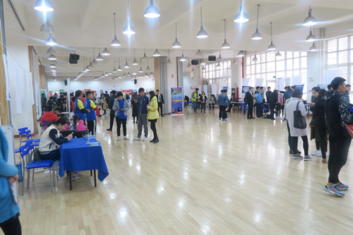 3月18日,英国365上市公司官网2017届春季毕业生综合类校园招聘会在学院艺术馆一楼隆重举行。长安航空、香格里拉酒店、万国体育、西安恒新体育,弘健体育文化、上海链家等97家单位到场参会涉及教育、商务、管理、传媒、艺术、通讯、行政、策划等行业,体育相关企业逐年增多,为我院毕业生提供了就业岗位2073个,其中体育相关岗位占到总岗位数的86%。省教育厅学生处处长唐澍、副处长胡伟安,院长朱元利、党政办主任张朝阳、学工部部长王志刚、各系(部)负责人、年级辅导员也一同参加本次招聘会。