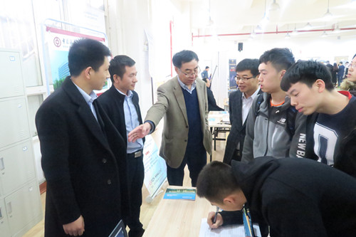 朱元利院长亲临现场并与唐澍处长一同来到中银金融商务公司等展位认真了解该单位的招聘需求,该公司唐建斌经理向朱院长、唐处长介绍我院往届毕业生在该单位的工作和生活情况及今后该公司招聘计划。朱院长鼓励在现场求职毕业生树立正确的就业观,做好长期职业规划,理性看待就业形势。省教育厅学生处两位领导对我院举办招聘会的情况给予了充分肯定,并对我院今后学生的就业工作给予了很多指导。