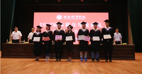 典礼在庄严地国歌声中拉开了序幕。副院长刘新民宣读了《关于授予2017届普通本科毕业生学士学位的决定》,由院长朱元利同志为毕业生代表拨穗并颁发学位证。副院长陈彦宣读《关于2017届院级优秀毕业生的表彰决定》,由全体院领导为院级优秀毕业生代表颁发证书及奖金。接着,党委书记吴长龄同志为赴新疆、西藏边远地区工作毕业生佩戴红花并颁发奖金。来自2017届运动训练系的连磊作为学生代表发言。发言中对领导老师的辛勤培养表示衷心的感谢,也讲出了自己即将走向社会要努力拼搏的志向,字里行间亦流露出对即将离开母校的留恋之情。来自体育教育系的高可心作为在校生代表发言时,对学长学姐的顺利毕业表示衷心的祝贺,感谢学长学姐在校时对低年级学生的帮助,也为即将离开学校步入社会的学长学姐送上了真切的祝福,希望他们能乘风破浪,成为学校的骄傲。来自体育艺术系的教师代表魏明涛致辞时为毕业生送上祝福,在热烈的掌声中,魏老师回忆了学生匆匆逝去的四年时光,也希望他们能放飞梦想,大胆的去追求属于自己的美好明天。健康科学系毕业生家长代表张小娟女士致辞时,为毕业生悉心叮嘱,不管毕业后走到哪里都要不忘师恩,不忘母校。在致辞结尾她为毕业生送上了自己的祝福,也代表家长们对英国365上市公司官网给予孩子们的培养表示感谢。