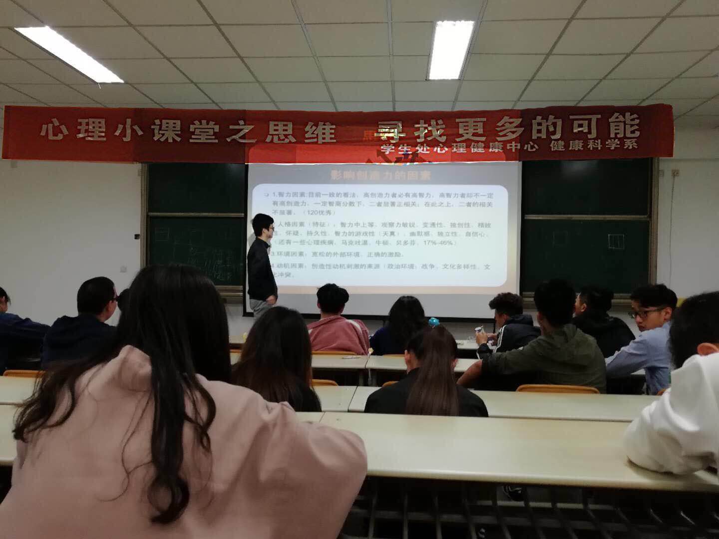 3月26日晚7点,由学生处心理健康中心主办、健康科学系承办的“心理小课堂·思维”活动在教学楼202教室顺利开展。