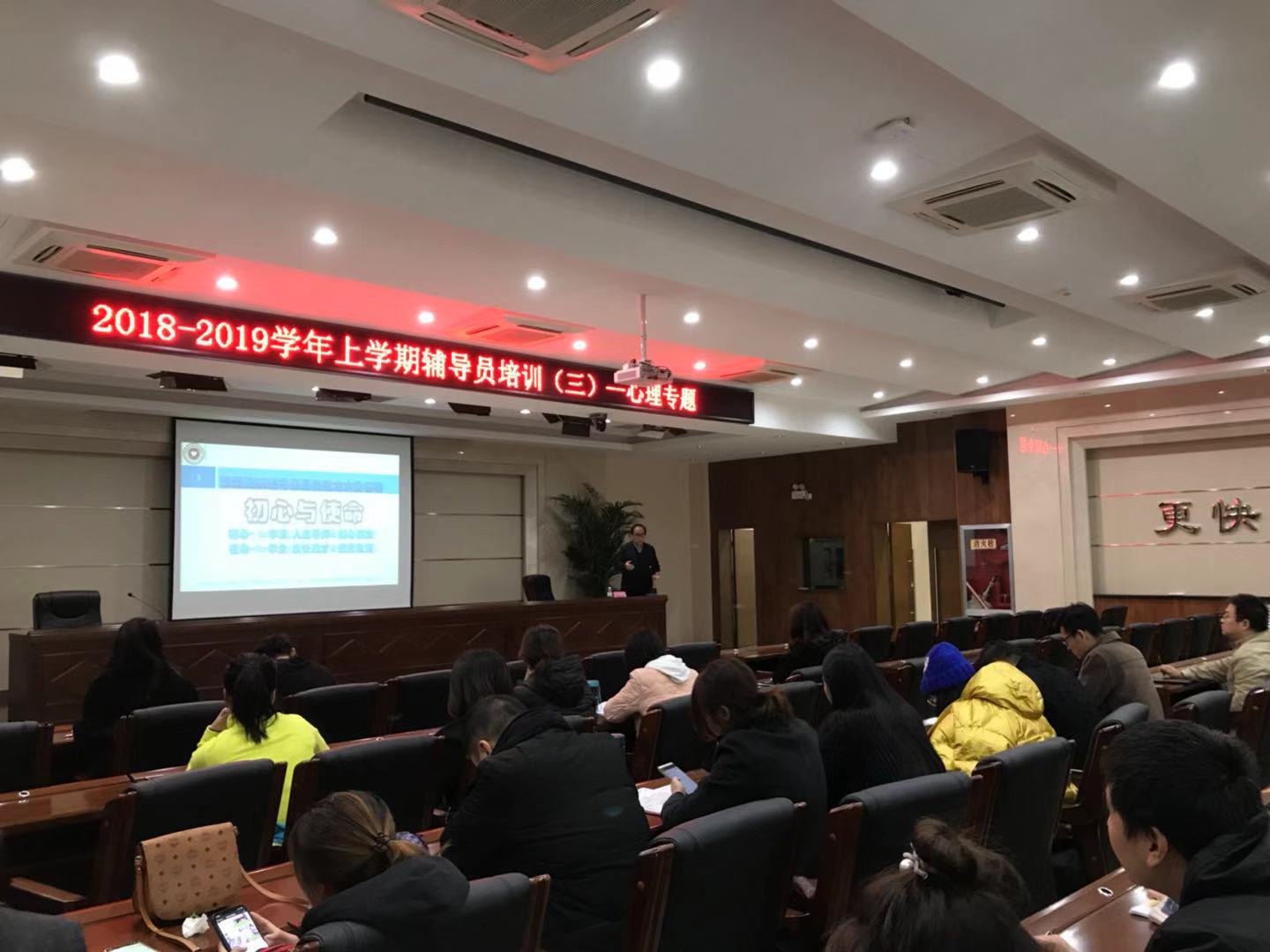 为进一步提升我院辅导员队伍专业素质和职业能力水平,学工部于11月7日下午4:00在2号行政楼六楼会议室举办了我院“2018-2019学年上学期辅导员系列培训(三)——心理专题讲座”,此次培训学工部邀请了陕西省高校心理素质教育研究会会长、西安石油大学心理研究所长,陕西师范大学心理学院兼职心理老师郑林科教授,我院全体专兼职辅导员参加了培训,培训会由学工部副部长李育红主持。