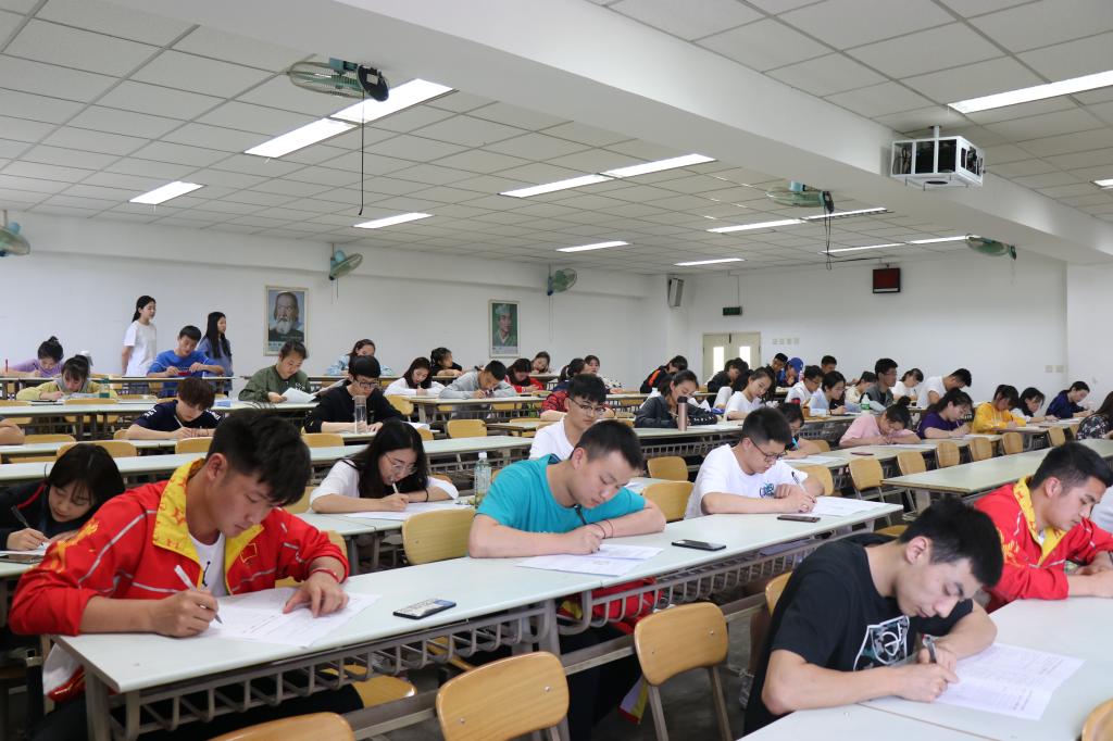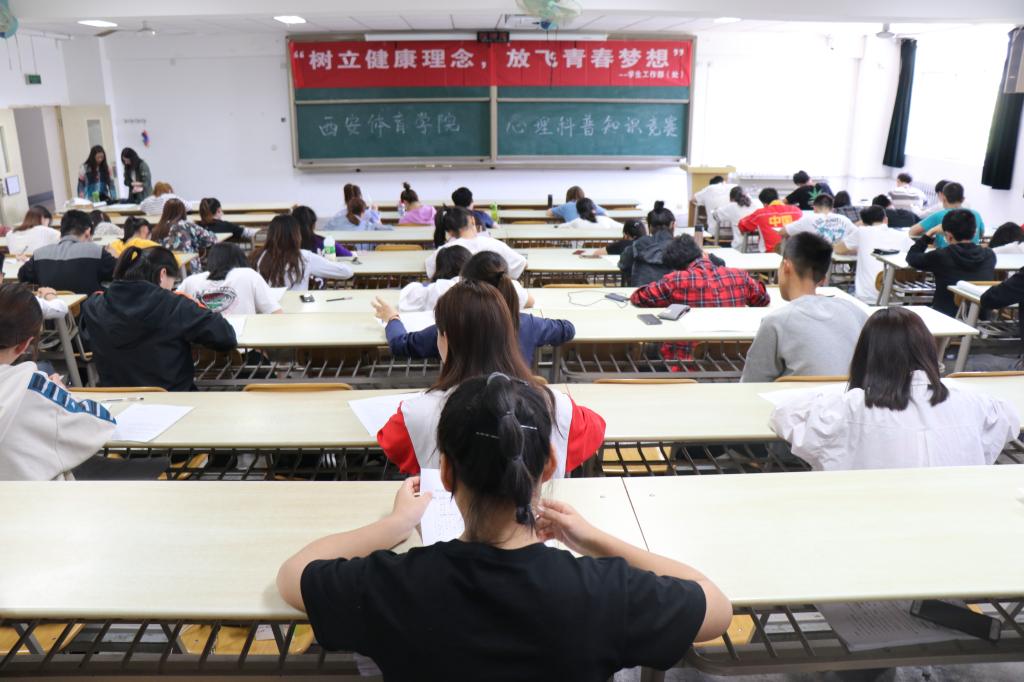 本次竞赛采用闭卷笔试的形式进行,题目密切结合大学生在校园生活中可能遇到的问题和情景,着重考察学生对心理知识的掌握和自我心理的调节和应用能力。竞赛现场紧张而秩序井然,同学们均认真专注,沉着答题。