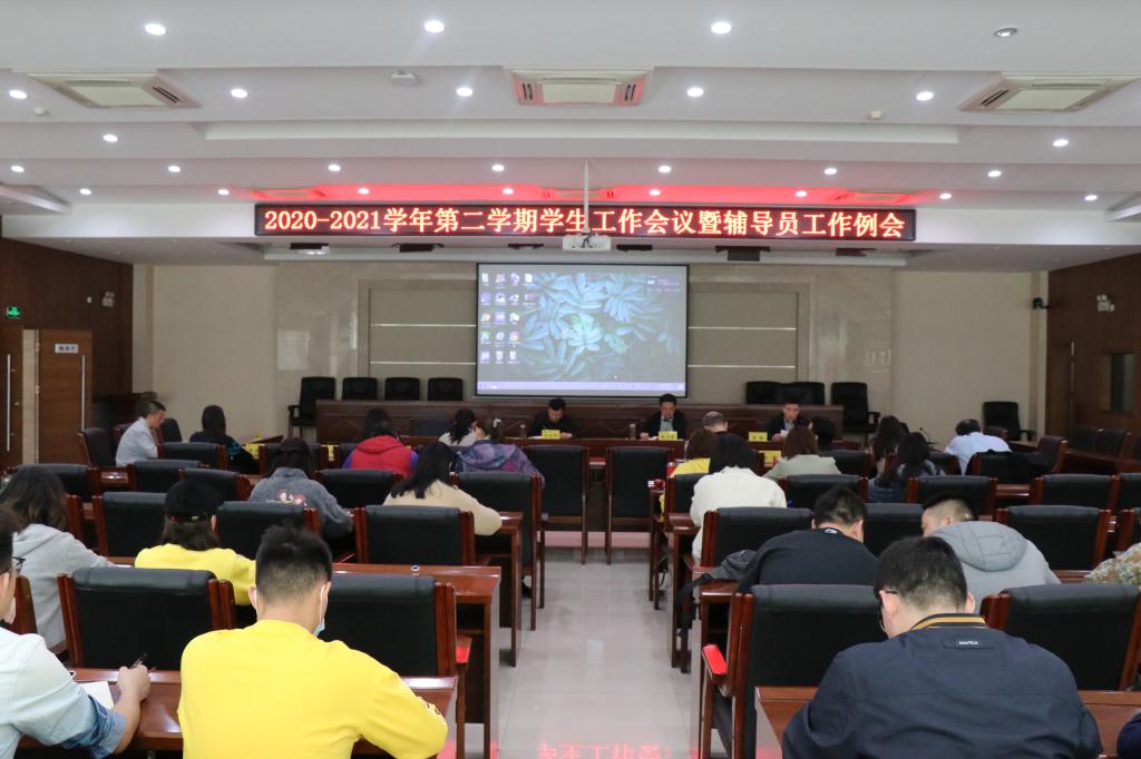 3月29日下午15:00,365官网在二号行政楼6楼报告厅召开2020-2021学年第二学期学生工作会议暨辅导员工作例会在,副校长张卫国出席会议,各二级学院党委书记、党总支书记,全体辅导员及学工部工作人员参加了此次会议,会议由学工部副部长樊敏主持。