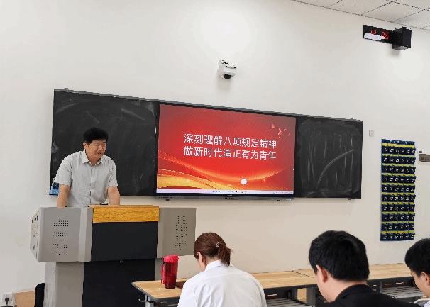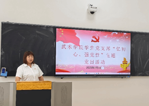 2025年7月1日武术学院学生党支部于在105教室开展“忆初心,强党性” 主题党课暨七一主题党日活动。本次主题党课活动副校长毕德鹏以“深刻理解八项规定精神,做新时代清正有为青年”为题,为学生党员讲授主题党课。