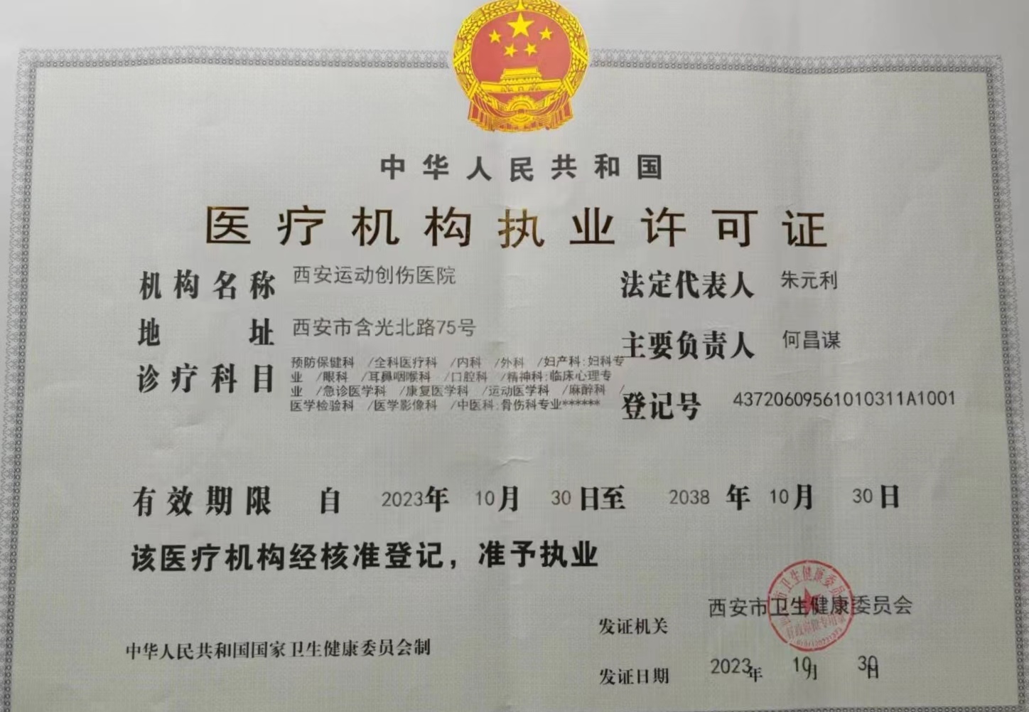 医院医疗执业许可证