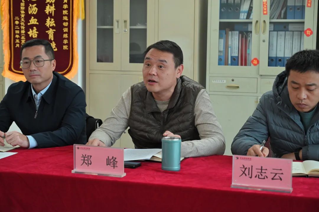 在座谈会上,运动训练学院副院长郑峰详细汇报了学院的基本情况、党建工作开展情况、人才培养、学风教风建设、科学研究以及竞赛训练等方面的工作。