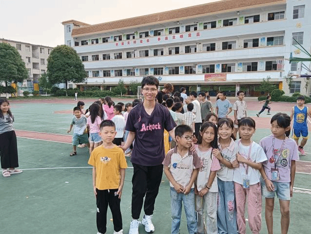 在第一天支教的日子里,我明白了篮球如何成为改变命运的力量。当球面触碰到那些粗糙的水泥地面时,当艳阳高照,火辣辣的太阳直射皮肤时,我看到了孩子们坚持的毅力以及顽强不屈的精神。我渐渐明白,支教不是单方面的给予。孩子们教会我的,远比教科书上的理论更为深刻——那种在烈日下仍坚持训练的韧性,那种对打球最纯粹的向往与快乐。篮球场上的每一次传球,都在编织着人与人之间最朴素的联结。展望未来,我渴望看到更多标准化球场在偏远地区拔地而起,看到专业训练与本土智慧的结合,更期待篮球成为连接城乡的桥梁。或许某天,这些孩子中会有人站在更大的赛场上,而他们带去的,将是这片土地赋予他们的独特力量。