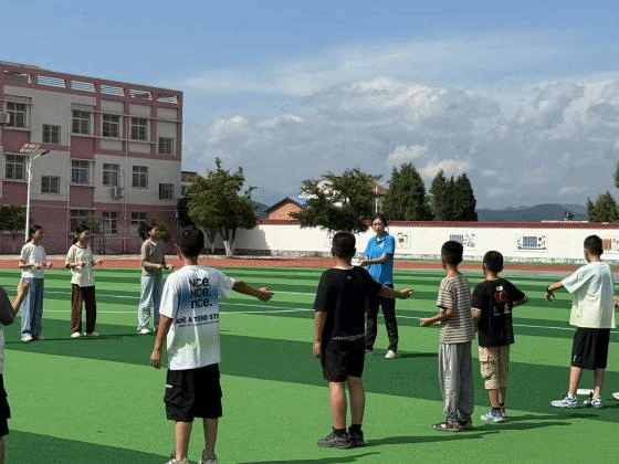 上午九时许,城固县第三中学的操场上热闹非凡。实践团队带来的飞盘与花式跳绳展示教学,成为师生关注的焦点。飞盘表演中,队员们的反手传接、空中转体接盘等技巧,引得学生阵阵惊叹。教学环节中,队员们分组指导,从握盘姿势到发力技巧细致讲解,同学们很快掌握基础动作,趣味对抗赛更让操场充满欢声笑语。花式跳绳展示同样精彩,“双摇三连跳”“十字交叉”等高难度动作配合动感音乐,形成活力四射的视觉盛宴。