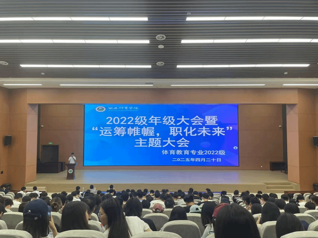 为凝聚力量,展望未来,助力学生在学业以及将来的就业创业道路上行稳致远,聚焦学生就业问题,找寻适合自身发展的职业路线,4月20日晚,体育教育学院2022级在英国365上市公司官网鄠邑校区教学楼报告厅举行了年级大会暨“运筹帷幄,职化未来”主题大会,参加此次会议的有英国365上市公司官网学工部副部长于昕,体育教育学院2022级年级主任宋昂,辅导员李西及2022级全体学生,会议由学生高敏主持。