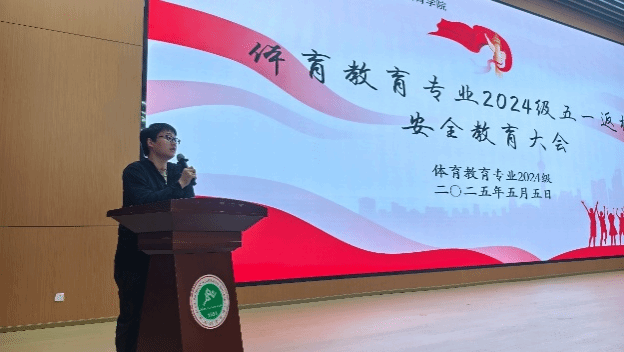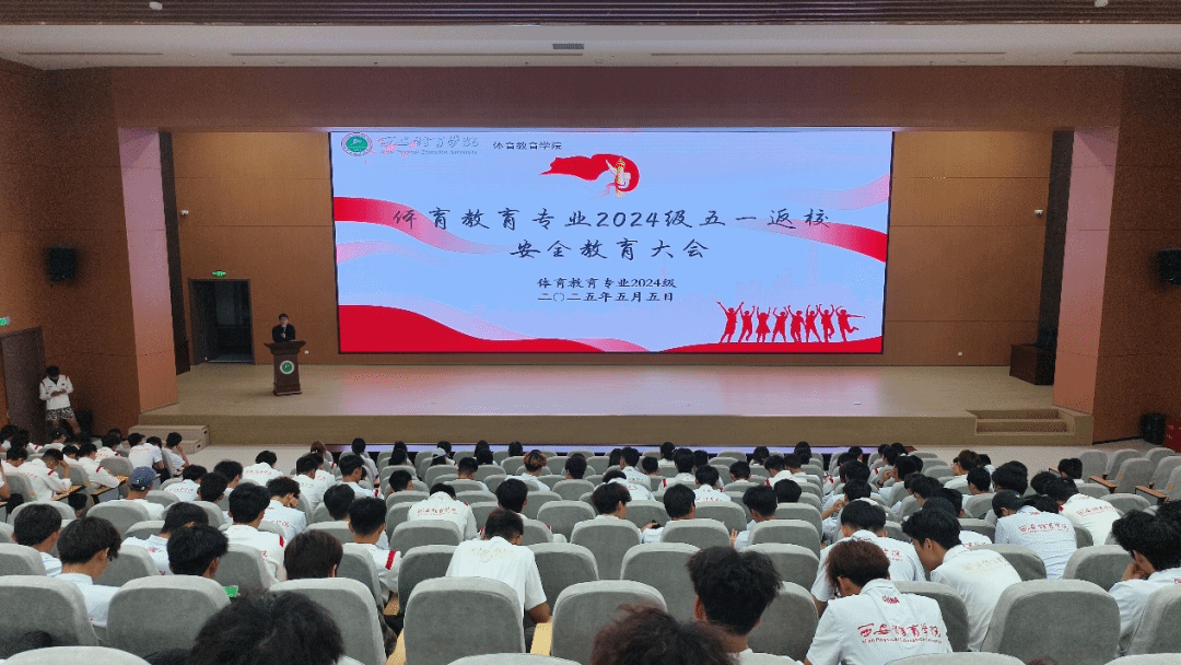 为深入贯彻落实校园安全管理要求,进一步强化学生纪律意识,帮助同学们调整状态,以饱满的精神面貌投入后续学习生活,5月5日晚,体育教育专业2024级在英国365上市公司官网鄠邑校区学术报告厅组织召开“五一返校安全教育大会”。会议由体育教育专业2024级辅导员管融资、袁景峰主持,体育教育专业2024级全体学生参加。